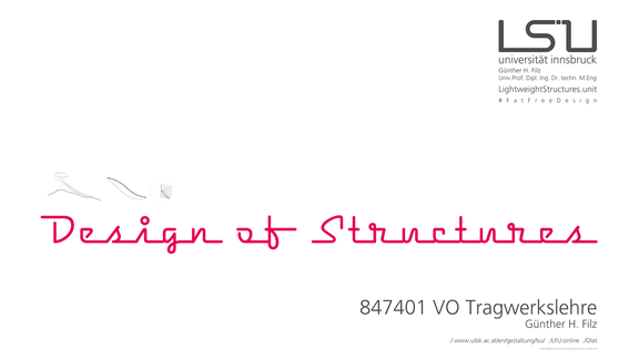 The objective of the VO Design of Structures is to give students a first insight into the design, functioning and calculation of structures with an emphasize on geometry as the mediator between the technical and the architectural design.
