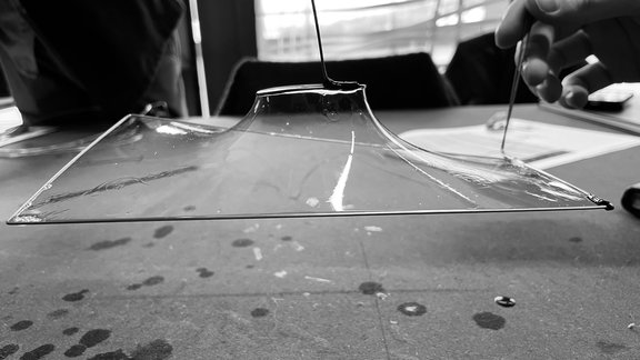 The course began with an exploration of minimal surface principles through experiments with soap film models. Based on these physical principles, the students designed and fabricated fabric prototypes. These models were then scanned and imported into a digital environment.