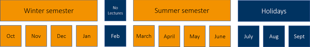 - Semester 2 (called “summer semester”) lasts from the beginning of March until the end of June/first week of July.