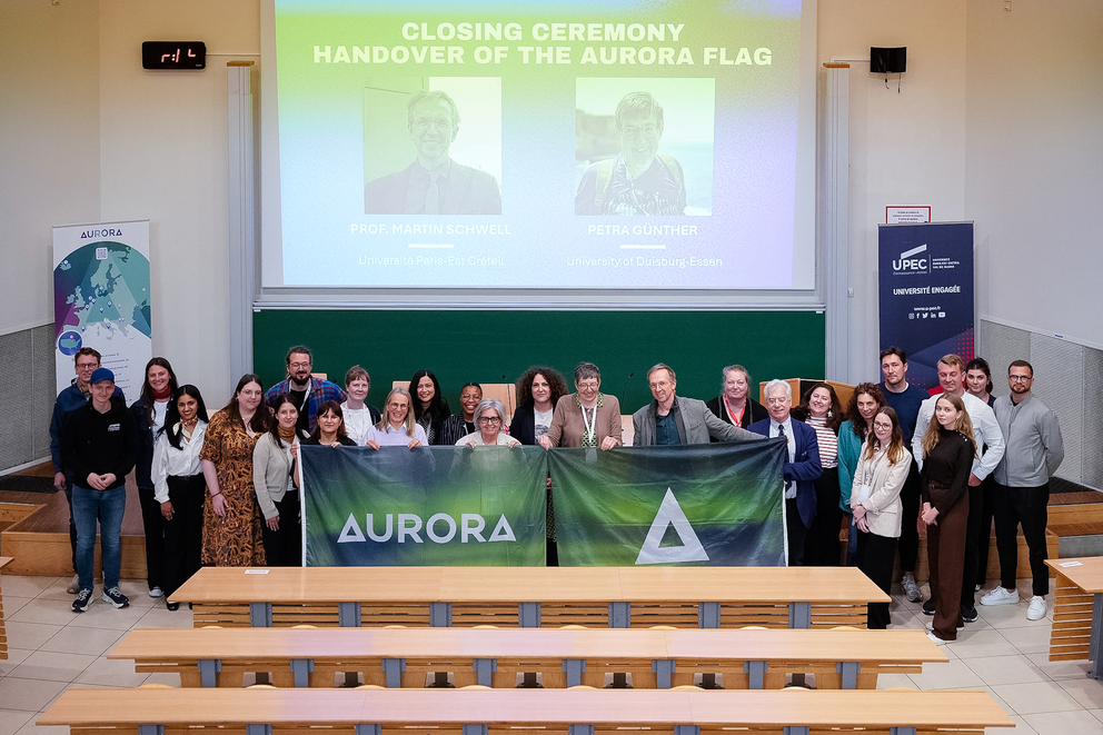The summit concluded with a closing ceremony and the official handover of the Aurora flag to the next host university of the Aurora Annual Conference 2026 - Universität Duisburg-Essen symbolizing the continuity of commitment to shared values and sustainable progress.