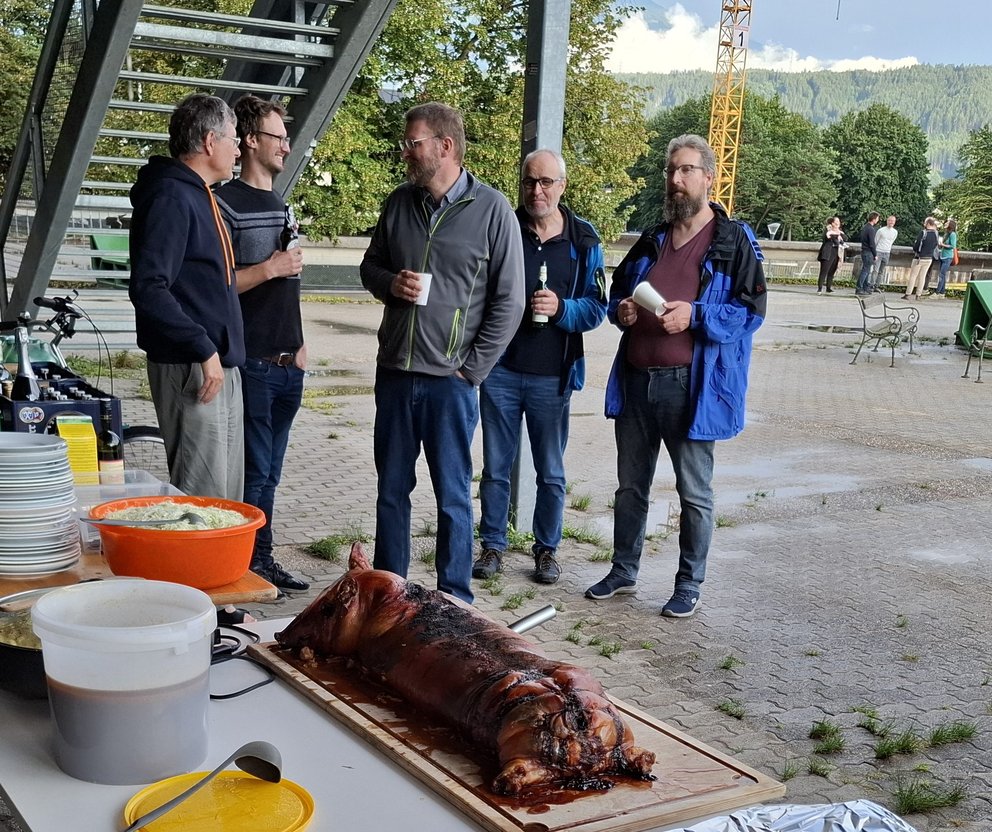 Last Friday, our group held its annual suckling pig get-together at the university. Current and former members came together to enjoy a relaxed evening with good food, drinks, and conversation. Alongside the traditional suckling pig, vegetarian guests were treated to delicious Kasspatzln. And of course, no gathering would be complete without our signature nitrogen ice cream for dessert. The weather may not have been perfect, but the great atmosphere more than made up for it.