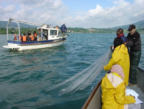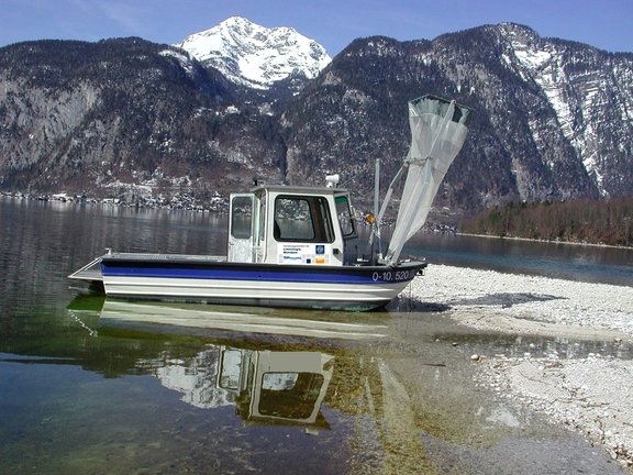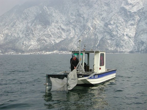 The infrastructure of the Research Institute for Limnology, Mondsee, offers comprehensive basic equipment for scientific research into limnological and evolutionary biology issues. The institute has two motor vehicles, two research boats and a dinghy with an outboard motor at its disposal for field work. The sampling equipment includes water samplers, plankton nets with different mesh sizes, two multi-probes, sediment traps, multi-mesh nets and a bank trawl, two purse seines, a scientific echo sounder, etc. The research building is equipped with five walk-in climate chambers and two aquarium rooms for the breeding and cultivation of species, some of which are sensitive (e.g. whitefish), at different temperatures. Employees, scientific guests and trainees can also work in the laboratory area with modern laboratory infrastructure.