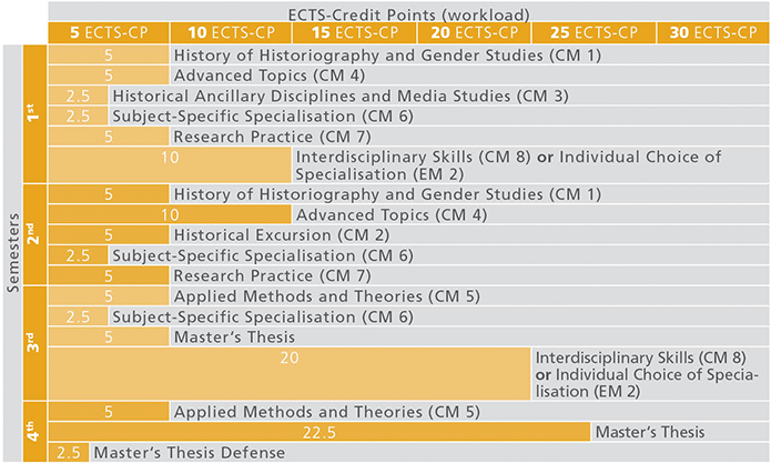 - 30 ECTS-Credits Core Area: History of Modern Times and/or Contemporary History
