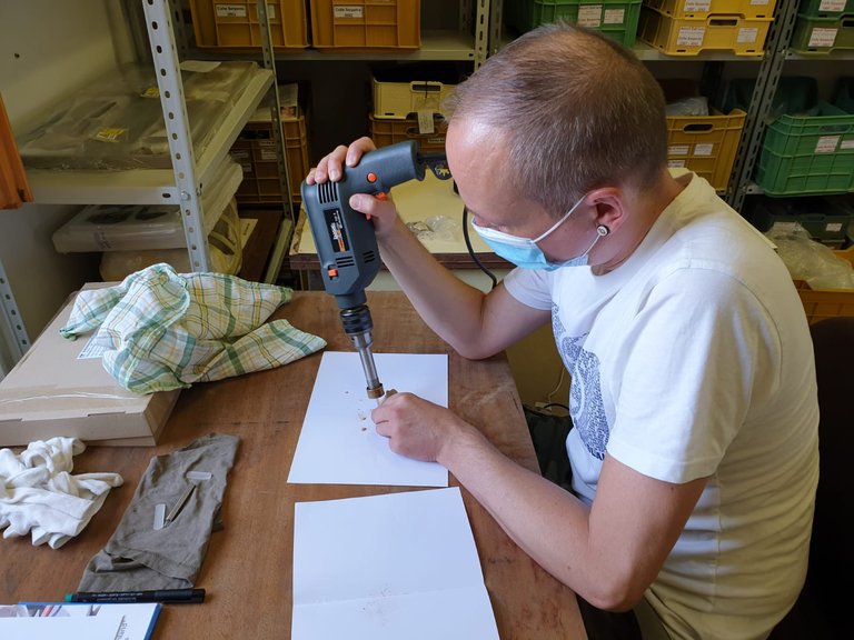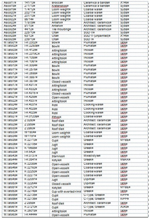 Sampling of ceramics as part of Neutron activation analysis (NAA). The NAA is considered one of the most reliable methods for determining the chemical origin and measures the concentrations of up to 30 elements, including many trace and minor elements. The elemental composition of pottery clay depends both on the composition of the raw clay used and on its preparation in the workshops. The elemental composition of the actually processed clay mass is decisive for determining its origin and allows supraregional comparisons. As the clay masses usually differ from place to place, it is assumed that vessels with the same elemental composition originate from the same production site. It is therefore possible to identify and localise the chemical fingerprint of a specific production site by taking suitable reference material. This part of the research in Ascoli is embedded in the larger project "Local pottery reactions" by E. Kistler (Innsbruck) and the sampling carried out by Kai Riehle (Innsbruck/Tübingen).
