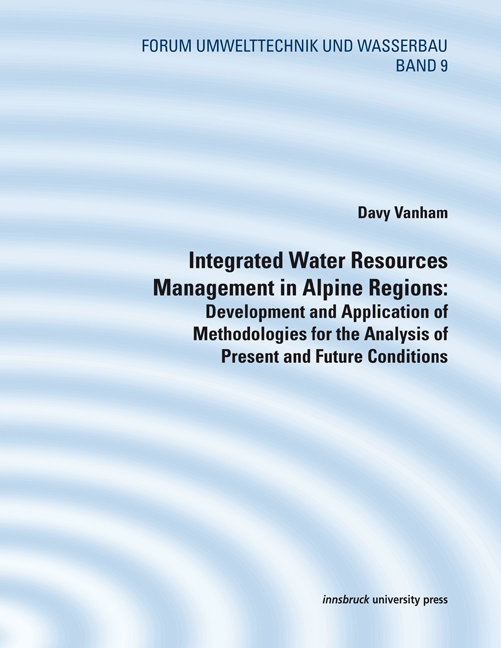 Die Dissertation behandelt die Entwicklung von Methoden, um die Nachhaltigkeit der Bewirtschaftung von Wasserressourcen und deren Nutzung in einem alpinen Umfeld – sowohl heute als in Zukunft – zu testen, und dies im breiterem Kontext vom integrierten Wasserressourcenmanagement (IWRM). Diese Methoden situieren sich innerhalb eines Workflows, welcher die Struktur dieser Arbeit formt. Sie bieten die Möglichkeit zur Analyse einer räumlich und zeitlich differenzierten Wasserbilanz zwischen verfügbaren Wasserressourcen und verschiedenen Wasserbedarfsträgern im alpinen Kontext. Als Endresultat ergibt dies die Erstellung 1) einer Wasserbilanzierungskarte und 2) einer Wasserversorgungssystemvulnerabilitätskarte, welche kombiniert mit alpinen Naturgefahren eine Risikokarte ergibt. Um richtige Entscheidungen zwischen verschiedenen Aktionen auf der Einzugsgebietsebene machen zu können, müssen Entscheidungsträger die richtigen Tools zur Verfügung haben. Damit können derzeitige und zukünftige verfügbare Wasserressourcen, Wasserbedarf und resultierende Wasserdefizite und -überschüsse evaluiert und vorhersagt werden. Der Workflow wurde für das Pilotgebiet Kitzbühel in den Österreichischen Alpen entwickelt und getestet, welches 19 Gemeinden in 4 Einzugsgebieten beinhaltet. Er zielt aber auf eine Anwendbarkeit in den verschiedensten Gebirgsregionen der Welt.