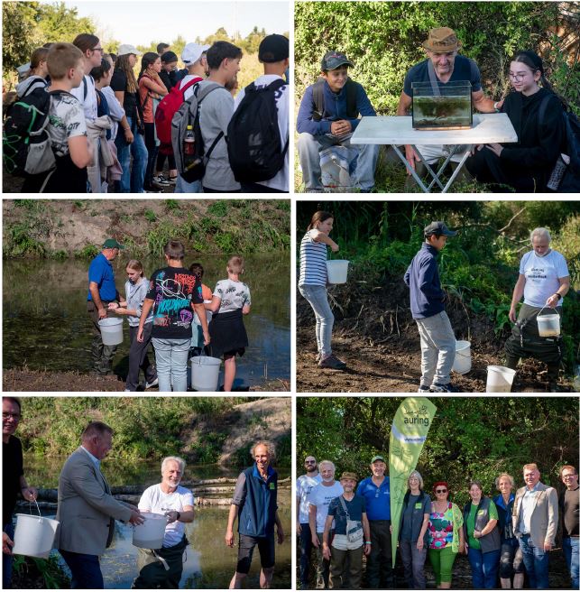 In Zusammenarbeit des Vereins AURING mit dem Forschungsinstitut für Limnologie in Mondsee wurden am 19. September in Hohenau an der March 1070 junge Schlammpeitzger in einem renaturierten Abschnitt eines alten Thayalaufes ausgewildert. Begleitet wurde die Auswilderung von Vertreter:innen der Gemeinde Hohenau, dem Guts- und Forstbetrieb Wilfersdorf an der March und den Klassen 3a und 3b der Mittelschule Hohenau. Der Verein AURING hat für die Schüler:innen ein kurzweiliges und unterhaltsames Rahmenprogramm über den Schlammpeitzger gestaltet.