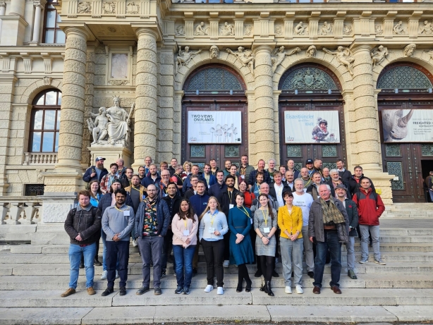 Fotos: oben links Gruppenfoto vor dem NH-Museum in Wien, oben rechts Begrüßungsworte durch Museumsdirektorin K. Vohland links unten: Preis für den besten Vortrag der Nachwuchswissenschaftlerin Y. Stepanyshyna (CZ/UA), rechts unten Exkursion in die Donau und Marchauen alle Fotos (Sabine Wanzenböck)