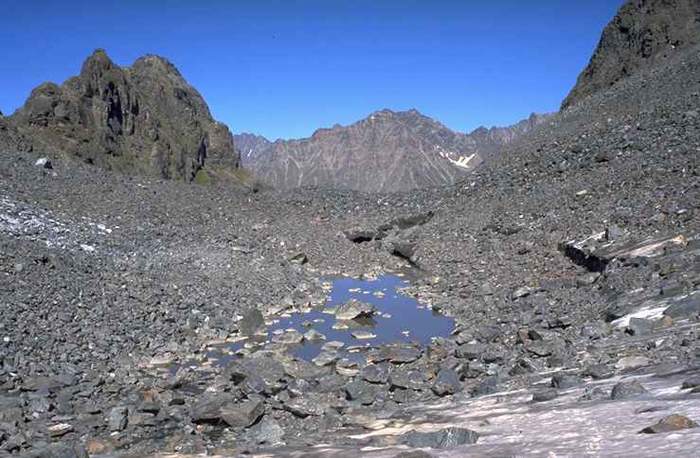 Depression with a small meltwater lake at Ölgrube rock glacier