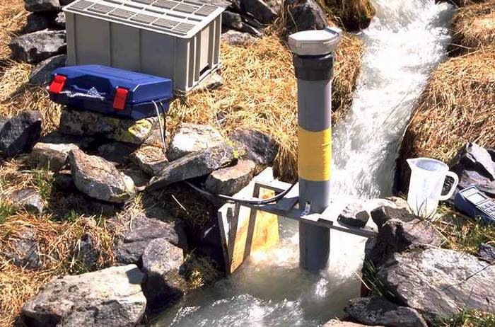 Gaging station at the meltwater stream in front of Reichenkar rock glacier