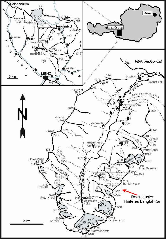 Gössnitz Valley, Schobergruppe (Hohe Tauern National Park) with location of rock glaciers