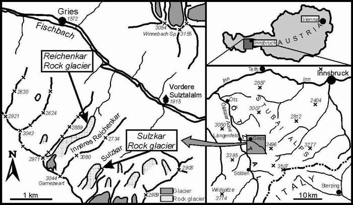 Location map of the Reichenkar and Sulzkar rock glaciers in the Western Stubai Alps, Tyrol (Austria)