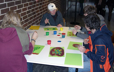 | Wir TheologInnen (Cornelia Cordin, Martina Kraml, Susanne Pointner, Marco Russo, Christian Schwald, Nikolaus Wandinger) luden im Rahmen einer Malinsel und eines Workshops dazu ein, Kommunikationsmuster in den Blick zu nehmen, über lebensverweigernde und lebensfördernde Kommunikationsmuster nachzudenken und die Beiträge, die das Christentum für eine friedlichere Welt leisten kann, wertzuschätzen. | 3