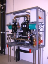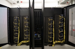 Due to the high discharge of thermal energy the iDataplex Racks are installed with water-cooled heat exchanging doors. The water flow temperature is kept at 16 degrees celsius by the heat exchanging device (Cooltrans).