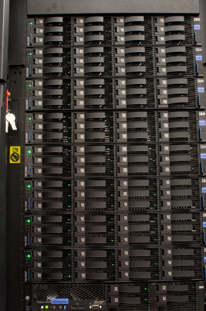 - Two iDataplex racks with water-cooled heat exchanging
