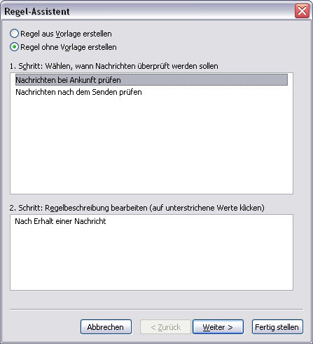Klicken Sie auf Regel ohne Vorlage erstellen...