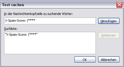 Klicken Sie auf bestimmten Wörtern in der Sektion 2.Schritt und fügen den Ausdruck " X-Spam-Score: (**** " wie dargestellt hinzu, jedoch ohne Anfürungszeichen!